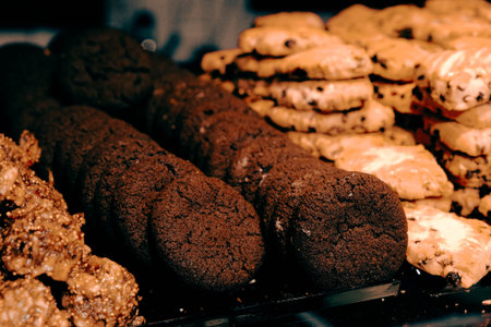 Chocolate cookie biscuits grid rows arrangement