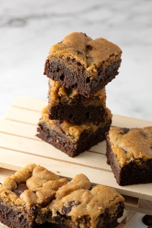 Brookie, delicious desserts on a marble floor.