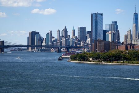 Manhattan and Brooklyn Bridge on a sunny day, New York City, USA.