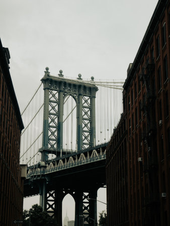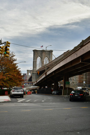 New York City, United States - September 18, 2022: View of the Manhattan Bridge from the streets of Brooklyn