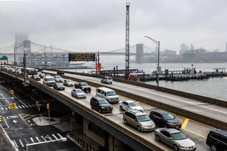 New York, USA - May 30, 2018: Traffic on street in Brooklyn, New York, USA. New York is the third most traffic congested city in the world.