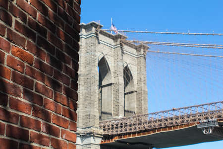 New York, USA - August 12, 2016: Brooklyn Bridge in New York. Sights, buildings and streets of New York.