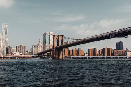 Manhattan Bridge and view on New York downtown, cityscape of Manhattan, USA