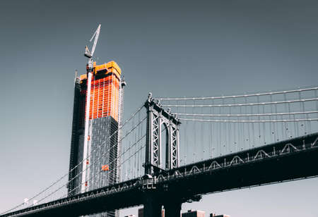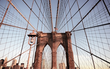 Details of the Brooklyn Bridge in New York City, USA. Toned in cooler color image