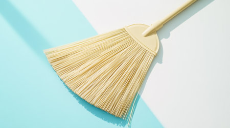 A minimalistic broom stands against a pastel gradient background, capturing the essence of cleanliness and simplicity in modern home decor. Ideal for lifestyle themes.