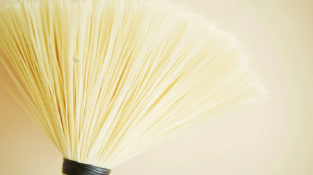 This close-up image showcases a beautifully crafted broom with fine straw bristles. The soft background enhances the natural beauty and craftsmanship of this traditional cleaning tool. Perfect for themes related to home care, rustic decor, and sustainable living.