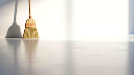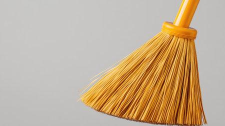 This image features a yellow cleaning broom against a simple gray background, symbolizing essential tools for effective household or workspace maintenance.