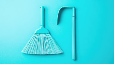 A blue broom on a white background. 3d rendering, mock up