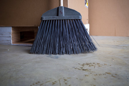 broom on cement concrete wall