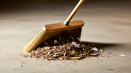 a new broom sweeping various debris and mud