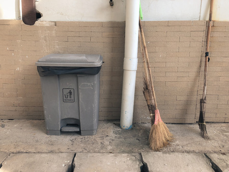 a broom in the storage room. the concept of cleaning and maintaining the frequency. copyspace.