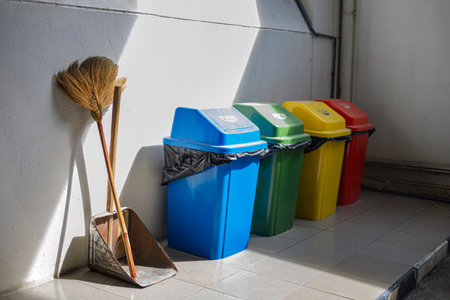 Colorful Trash Cans For Sorting Trash showcasing recycling and eco-friendly practicesperfect for environmental campaigns, sustainability projects, or educational content.