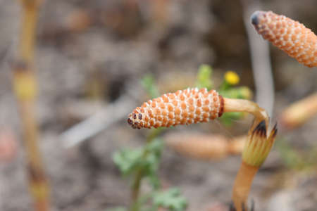 Flowering of horsetail weed in the wild.