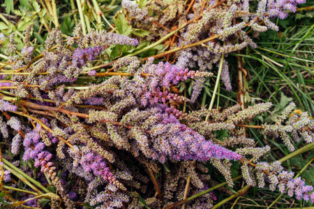Purple astilba chinensis flowers cut in autumn