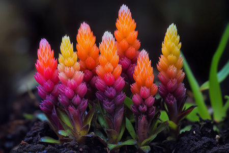 AI Generated. close up macro of an unearthly plant with vibrant teal and orange colors