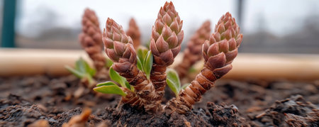 Red Asparagus Shoots Jut Up from Ground in Crater Lake National Park