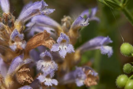 Orobanche ramosa lilac flower close up