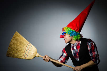 Funny clown with the broom