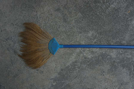 Old house broom on the concrete floor in front of the house