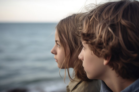 cropped shot of two young friends looking out on the sea together, created with generative ai