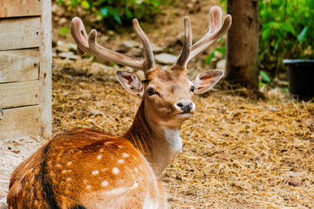 Male fallow deer in zoo, selective focus