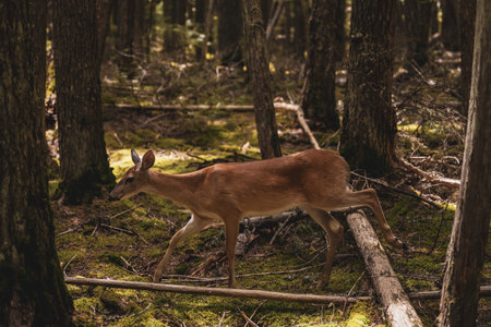 Mule Deer Walks Through Mossy Forest in Glacier National Park