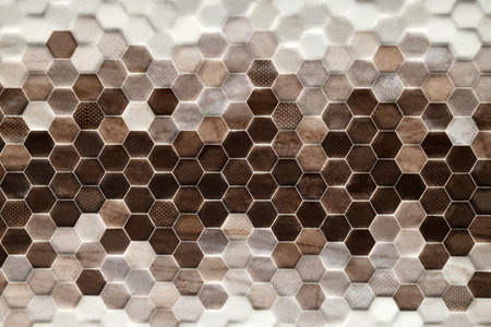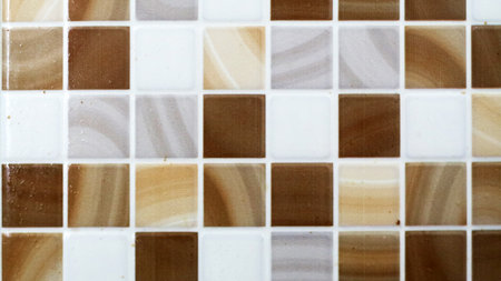Brown and Beige Mosaic Tile Pattern with Glossy Finish and White Grout Detailing