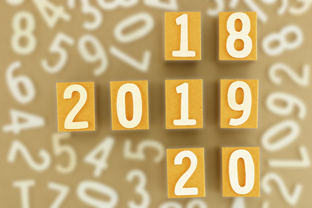 Year 2018,2019,2020 made from small wood number on kraft paper box