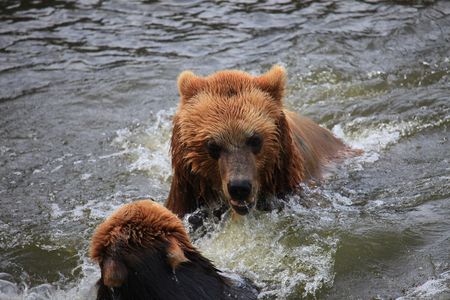 Close up shot of dangerous & aggressive brown bear fight each-other.
