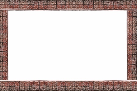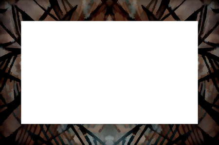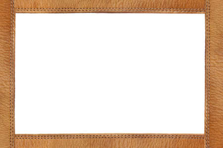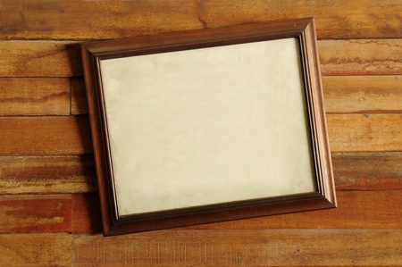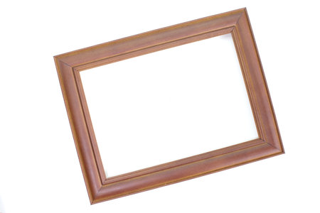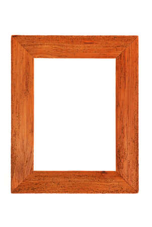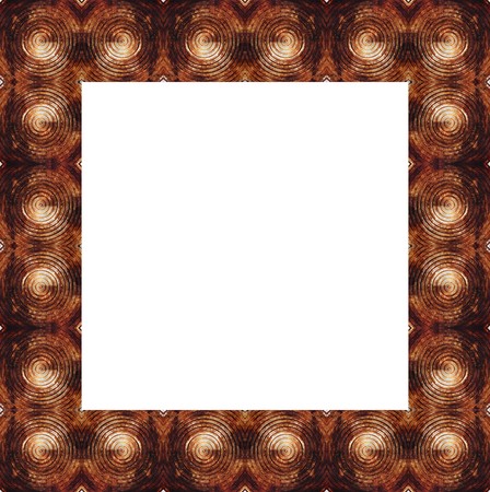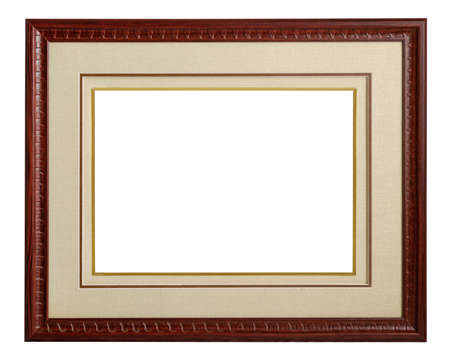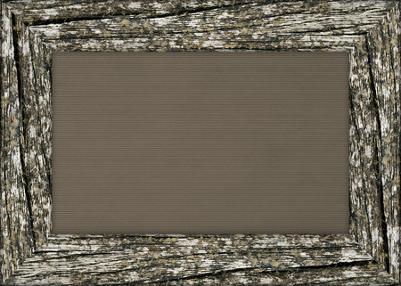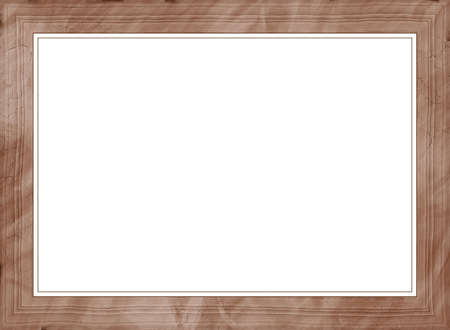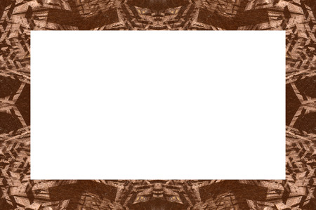Brown wooden frame with white space. Wooden material background with empty raised frame and place for photo or text.