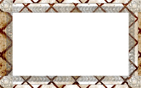 frame scrap, with metallic rusted surface texture, with iron rivets and black screen on metallized background. Neglect, decay and ruin, copy space