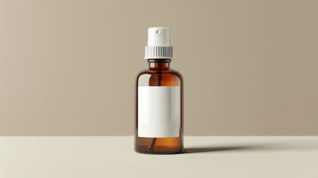 AI Generated. Brown Glass Bottle with White Cap and Green Leaf Design