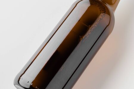 Amber glass bottle isolated on a white background. Close up.