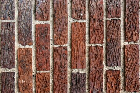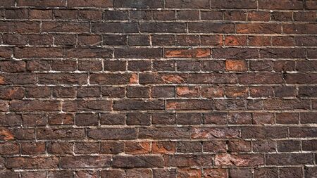 Weathered texture of stained old dark brown and red brick wall background