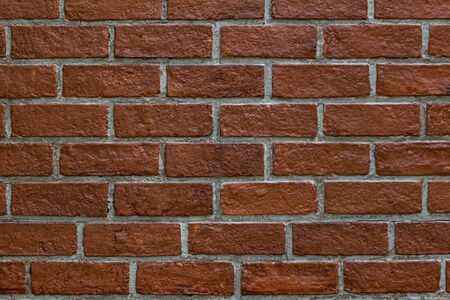 Red or Brown brick wall background. Grunge cement painted wallpaper. Block exterior and Retro, Loft or Vintage built style.