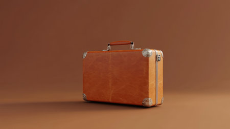 A vintage leather suitcase showcasing a classic design. This stylish piece of luggage highlights craftsmanship with its earthy tones and solid handle, perfect for travel or display.