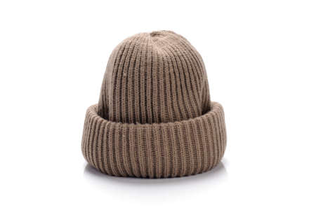 Brown wool winter hat isolated on white.