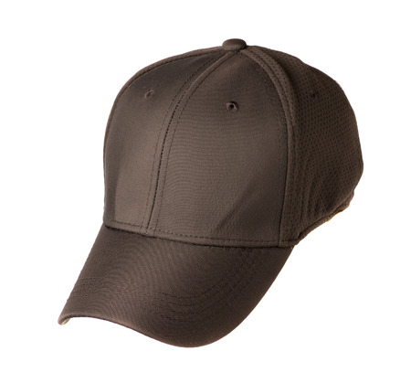 Brown and black baseball cap isolated on white background. Side view.