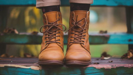A pair of classic brown leather boots rests on a rustic wooden surface, showcasing their vintage charm and craftsmanship. Ideal for fashion and footwear enthusiasts.