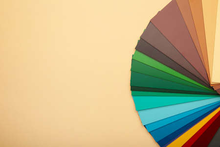 Color palette guide on beige background. Close up view.