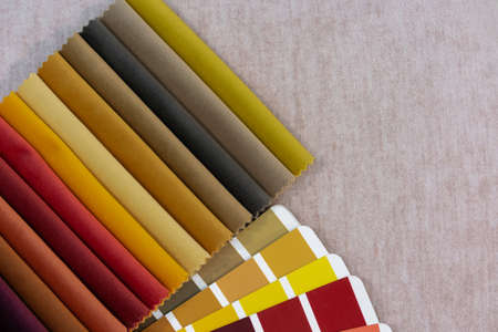 Catalog of multi-colored fabric samples. Textile industry background. Tissue catalog