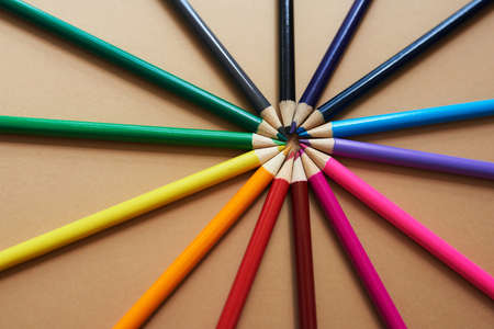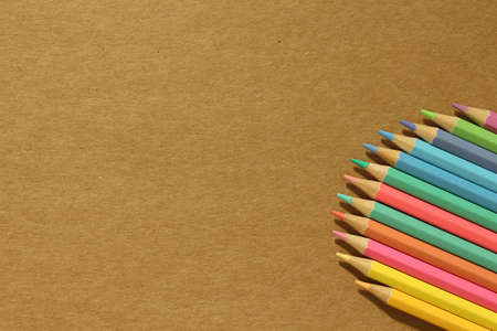 Color pastal pencil on paper brown background. top view.