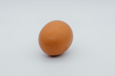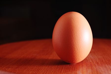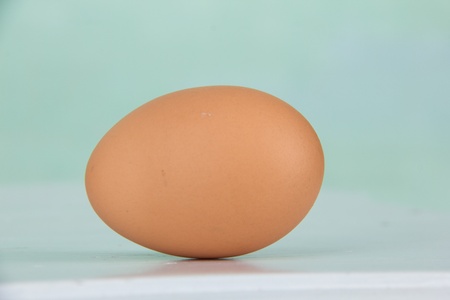 One brown chicken egg in cardboard container. Fresh raw organic chicken egg, close up
