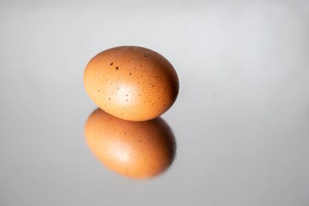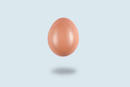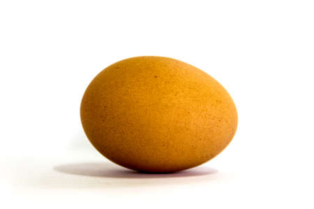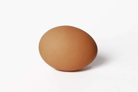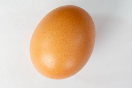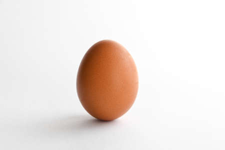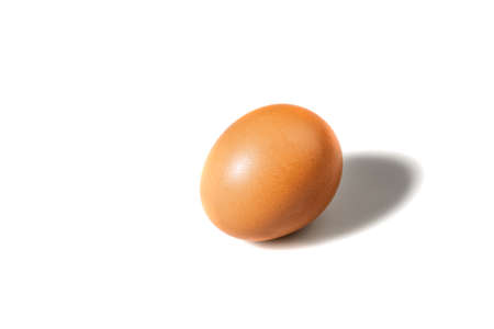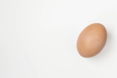 Stock image of 1 chicken egg laid on a white background. There was a slight shadow caused by artificial light shining down from the upper left corner. light from the right window It is a stock image that users can instantly put text on the white side of the image.