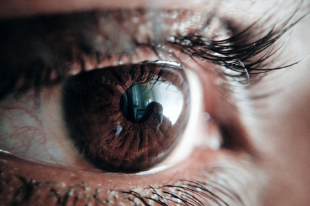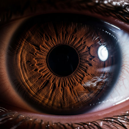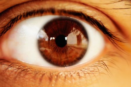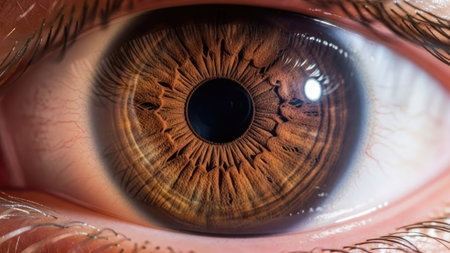 brown eye retina with reflection on it close-up
