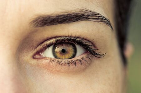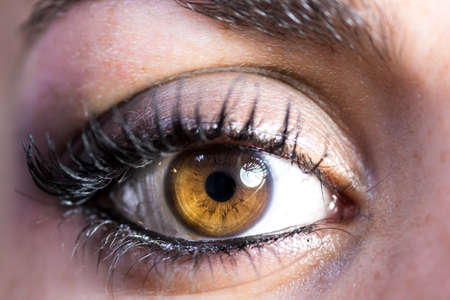 Close up of beautiful woman's brown eye. Macro shot with shallow depth of field