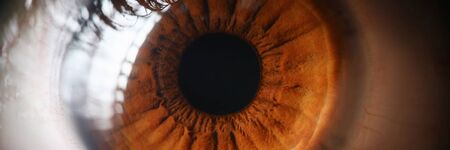 Macro pupil retina colse brown eye of woman