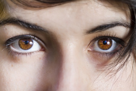 young woman brown eye background