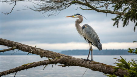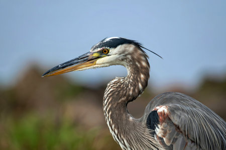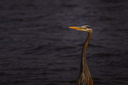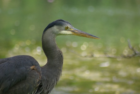 Side profile view of Great blue Heron