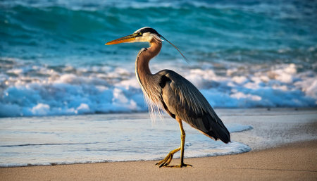 Great Blue Heron (Ardea herodias) on the beach